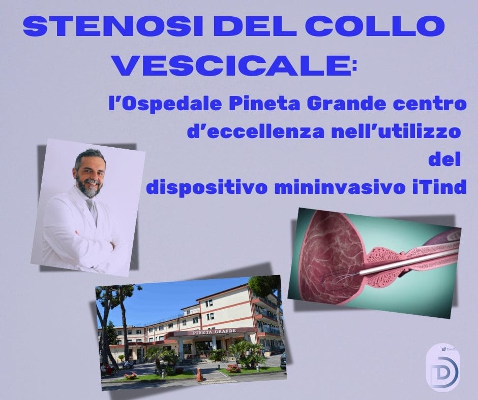 Stenosi del collo vescicale: l'Ospedale Pineta Grande centro d'eccellenza nell'utilizzo del dispositivo mininvasivo iTind. Il dottor Donato Dente, primario dell’unità operativa di urologia robotica ed endoscopica è tra i primi specialisti campani e italiani ad aver contribuito all’esperienza clinica per questo particolare dispositivo.